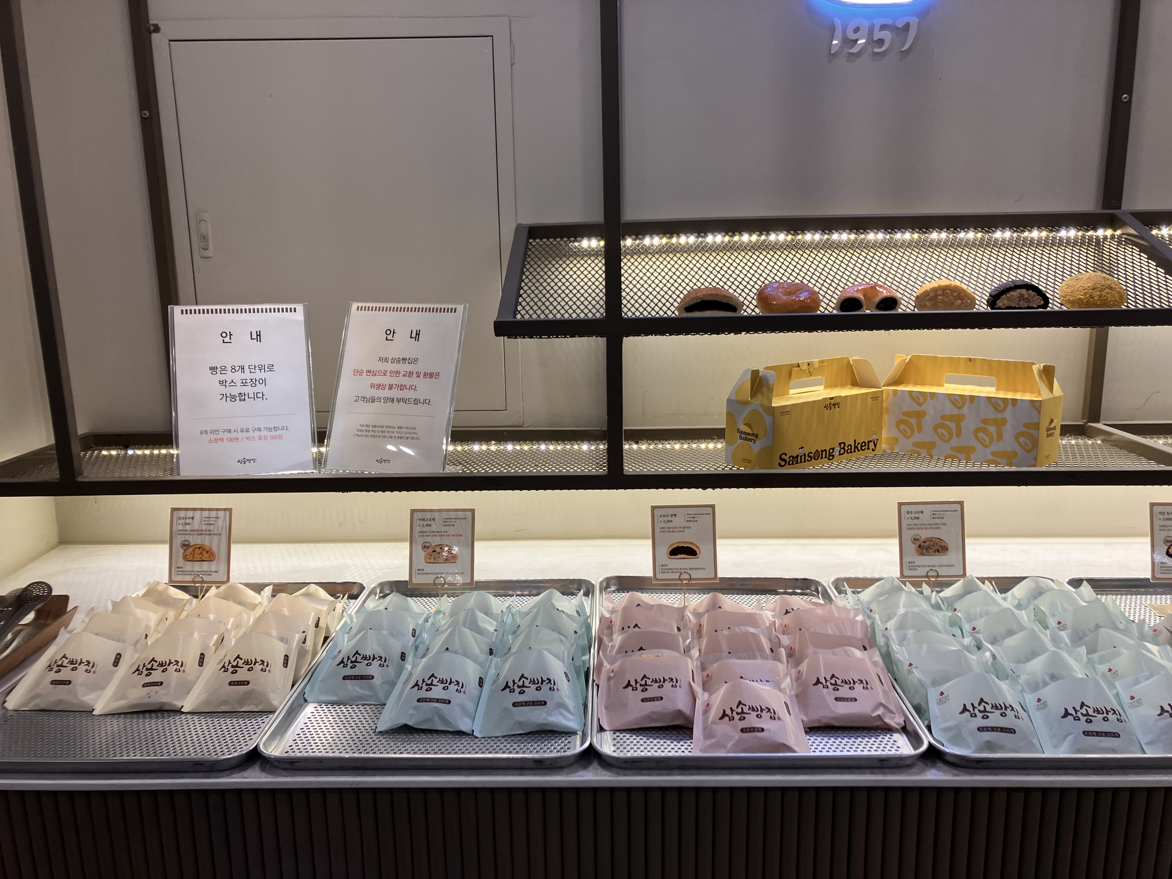 - 처음에는 분명 소보로빵과 단팥빵, 대표메뉴인 옥수수빵 등의 종류가 가득했는데 이제는 맘모스빵부터 베이글, 카스테라와 각종 아기우유, 음료들이 가득해졌다. 청도 인근에는 어르신들이 많이 살아서 니즈를 충족시키기 위해서인지, 본점 자체적으로 메뉴가 많이 개발된 것인지는 모르겠지만 들를 이유가 더 많아졌다. 덕분에 우리 할머니 요새 살 찌고 있는데 조금 걱정되기도 한다.