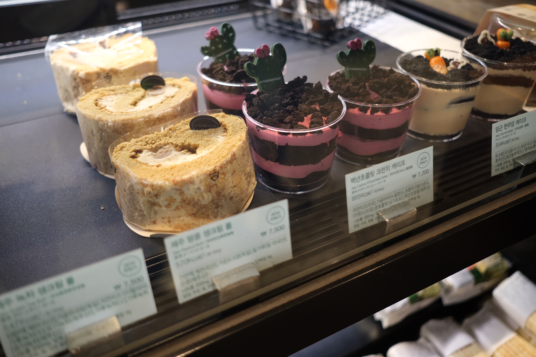 - 제주도 스타벅스에만 판매하는 메뉴가 있는 사실은 모두 알고 계실 겁니다. 거기다가 스타벅스 리저브에만 파는 메뉴도 있는데 이 모든 것을 즐길 수 있는 곳이 바로 제주신화월드 스타벅스 R입니다. 제주도 당근케이크와 한라봉케이크, 백년초콜릿 크런치 케이크, 제주 녹차케이크 등 디저트부터 제주 까망크림 프라푸치노나 쑥떡 프라푸치노 등의 제주메뉴, 민트초코라떼와 같은 리저브 메뉴들을 먹어보았는데 참 맛이 좋았습니다.