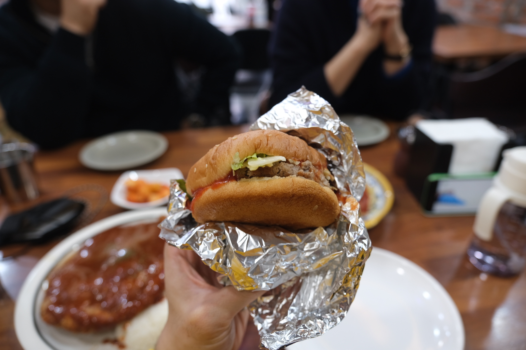 - 바로 옆에 위치한 가게인 아메리칸 레스토랑, 진한 홍차라떼가 맛있는 샘스플레이스 등 이색적인 장소들이 함께 하는 장점이 있습니다. 간단하게 한미버거만 먹어보고 다른 매장들을 들려 맛집을 둘러보시는 것도 추천합니다. 개인적으로는 홍차를 안 좋아하는 사람도 입문시켜버릴 수 있을만큼 맛있는 샘스플레이스를 추천드립니다.
