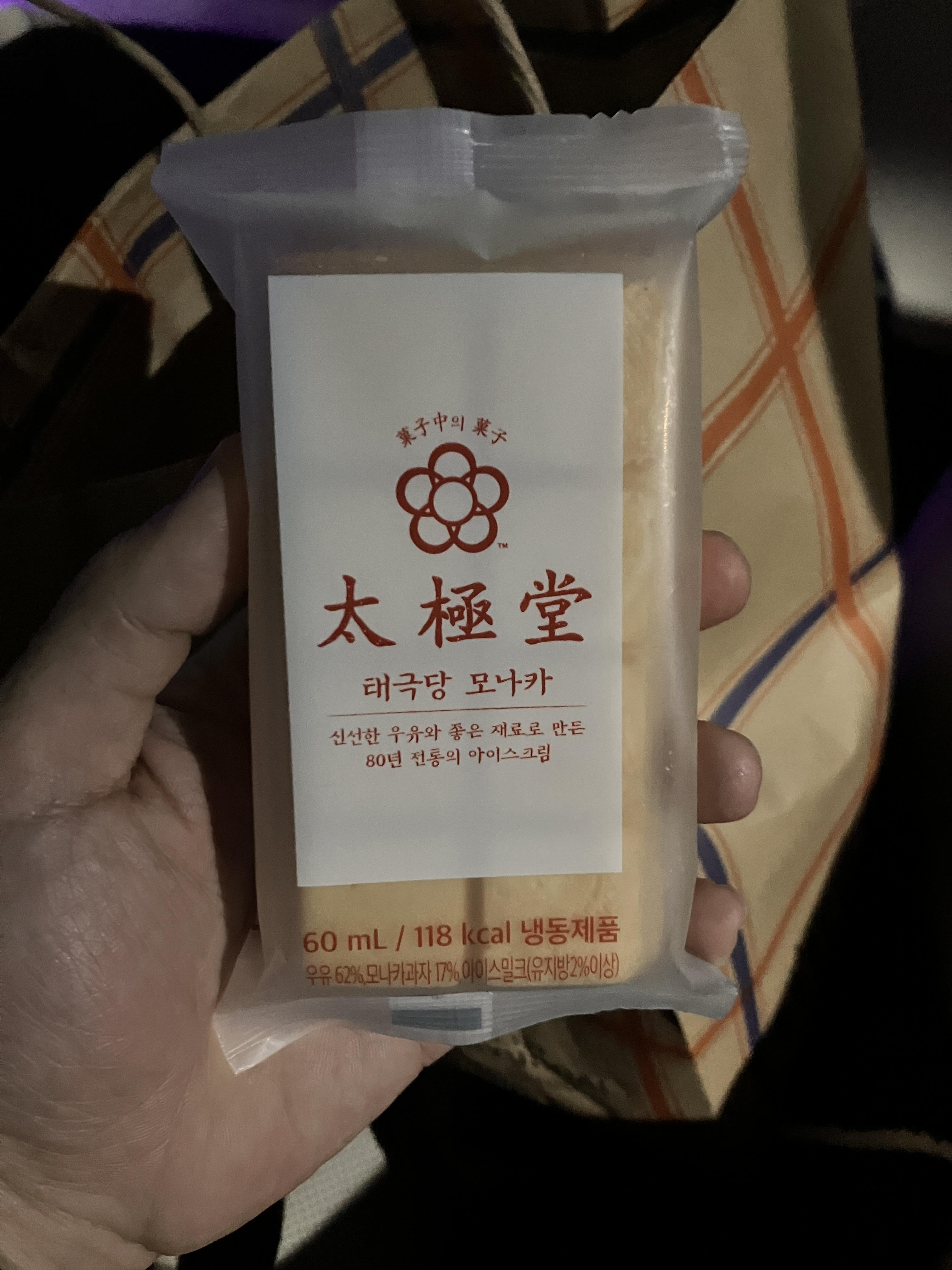- 태극당의 대표메뉴 중 하나인 태극당의 모나카는 오픈 첫 날 솔드아웃을 기록할만큼 유명한 상품이다. 먹어보면 부드러운 아이스크림과 더불어 살살 녹는 과자부분인데 초코덕후인 본인은 역시나 조금 아쉬움을 느꼈습니다. 가운데 초코가 하나 딱 박혀있었으면 하지만 아들과 같이 먹기에는 이걸로 충분했습니다.